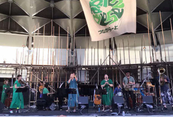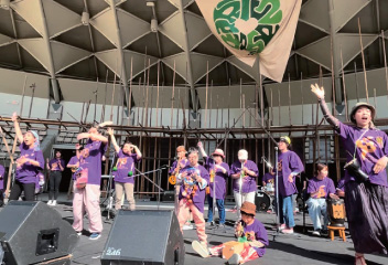 DJEMBEオーケストラ横沢道治率いるジェンベ集団。「つながらーと」には初回から参加。今回は南アフリカのマリンバ奏者・河辺知美をゲストに迎えパレードします。誰でも参加できます。何か音の鳴るもの持って来てください。